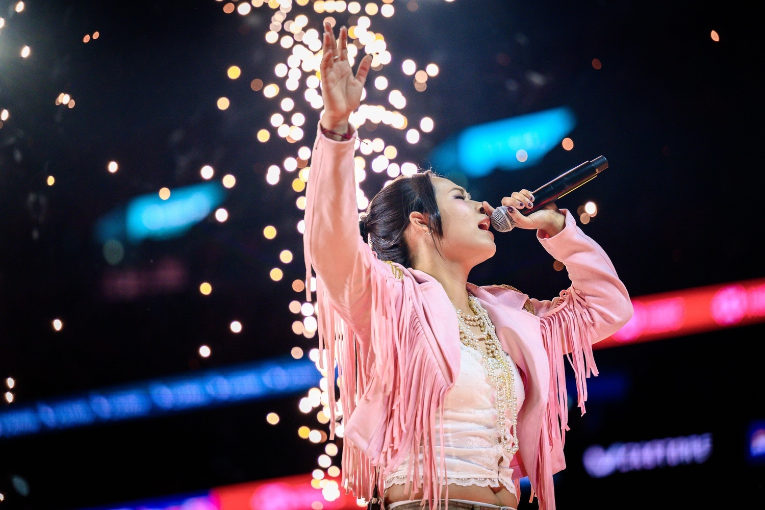 With the roof closed at the magnificent Kai Tak Stadium, the 34,000-strong crowd was entertained by a blockbuster show featuring South Korean K-pop girl group Primrose and Filipina singer-songwriter Gwyn Dorado.