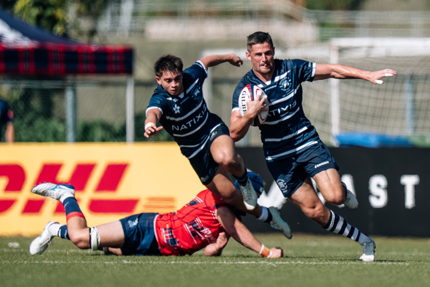 HKFC Natixis Club levelled things up within 90 seconds of the second half, with their own scrum-half Anthony Coebergh going under the posts after good midfield play. Jericevich added three from a penalty in the tight game to retake the lead, but Stroem read and made an intercept and went under the poles for HKFC to lead for the first time after 56 minutes.